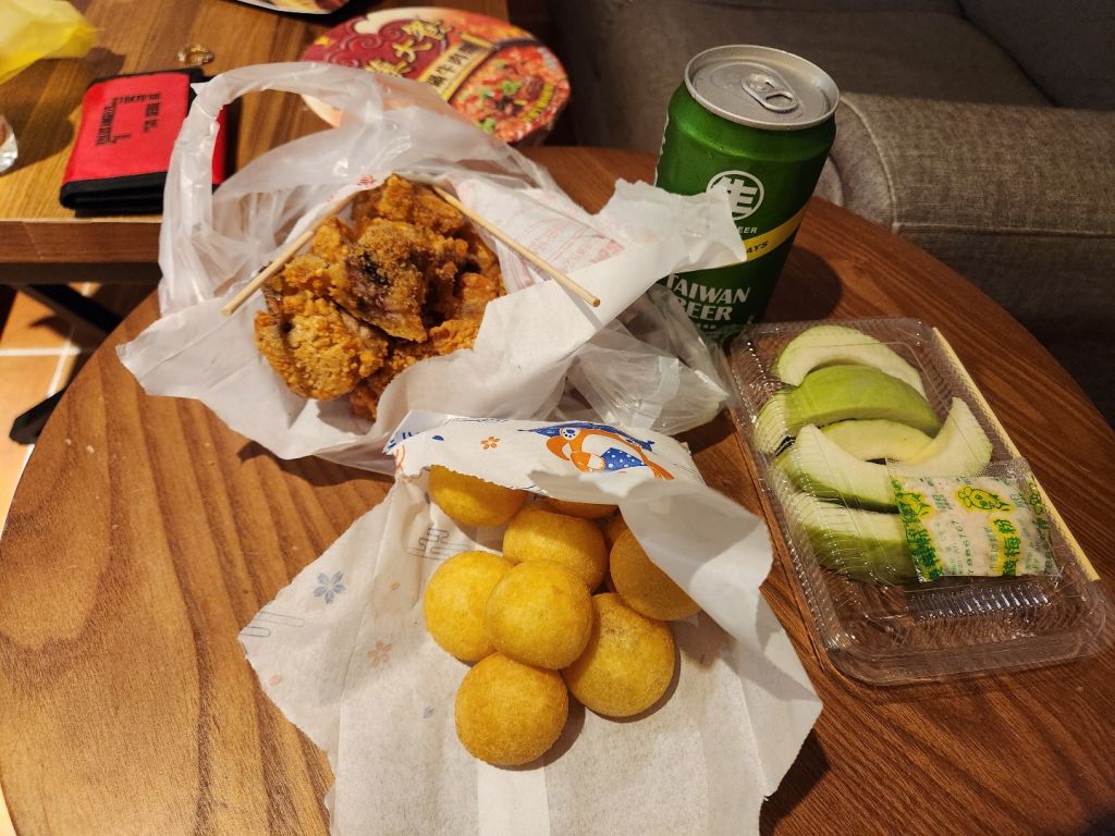 컨딩 야시장은 분위기는 좋지만 사실 메뉴가 많진 않다. 뭘 먹어야 할지 고민이 되었다. 마지막 야시장인데... 일단 편의점에서 맨날 보기만 했던 계란을 샀고, 구아바 샀던 과일집에서 왁스애플을 샀고, 문어다리튀김을 사고 싶었는데 오늘 안 나오셔서 가리비치즈야끼를 샀다. 어제 구아바도 너무 맛있더니 오늘 왁스애플 추천하셔서 샀는데 그것도 너무 맛있었다. 내가 알기도 둘 다 달콤한 과일이 아닌데 여기서 파는 건 다 싱싱하고 달콤했다. 타이완비어 골드까지 사서 만찬으로 마무리! 좋은 여행이었다. (다니다 보니 스쿠터 가격은 가게마다 달랐다. 알아보고 빌릴 걸)