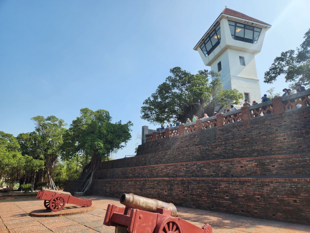 가는 길에 밀크티보바 한잔 테이크아웃했다. 단돈 50twd에 보바 추가 공짜라는데 그냥 지나칠 이유가 없지. 쪽쪽 빨아먹으며 안평 고보에 갔다. 입장료는 60twd. 클룩으로 샀다(별 차이 안 나지만 현금 자꾸 뽑기 귀찮아서). 이것도 대만의 영웅이 네덜란드로부터 지켜낸 의미있는 성곽이지만 버려져 있던걸 일본인들이 복원해 줬단다. 대만이 일본에 호의적인 이유를 알겠다. 당연히 회유책이었겠지만 당시 그들에겐 감사한 일이었겠지. 전망대가 있어서 안평 사방이 잘 보이는 곳이다.