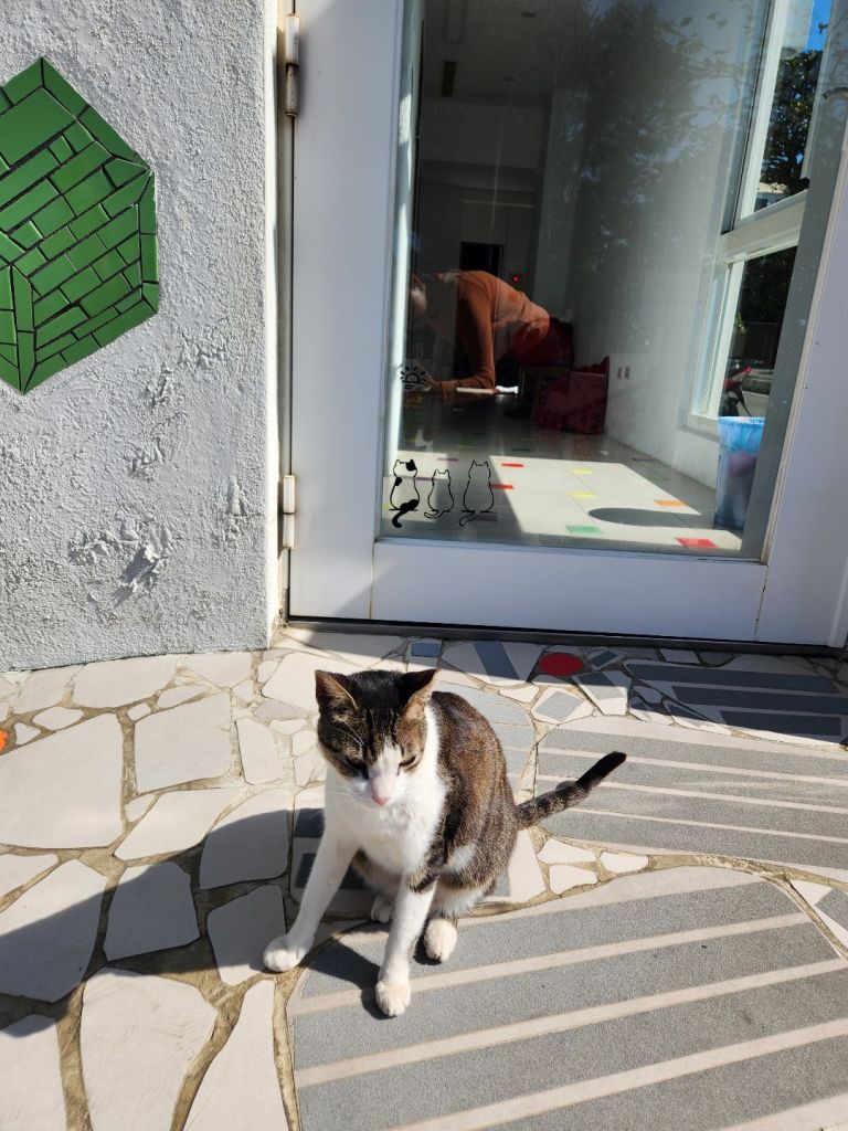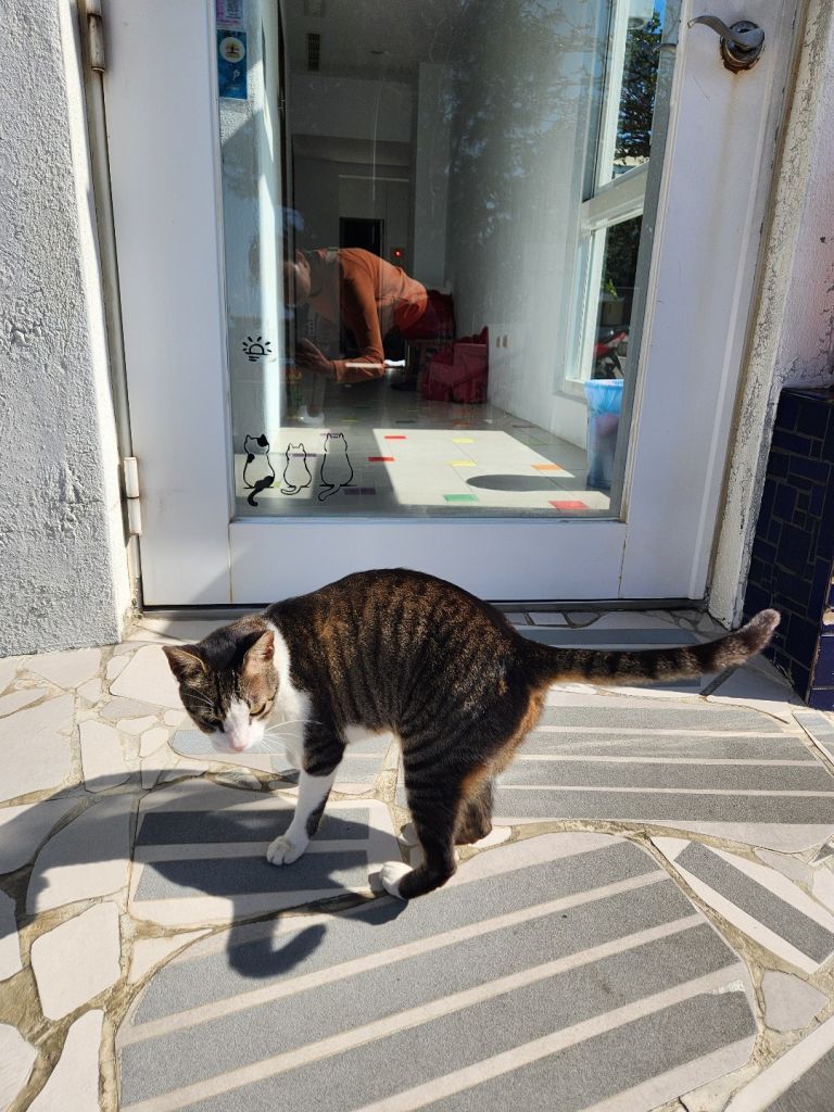 객실 컨디션도 좋았지만 숙소 앞 뷰가 너무 예쁜 거였다. 냥이가 문 앞을 지키고 있고, 문신은 있지만 주인 아저씨도 친절하시고, 청소도 자주 해주시고, 방도 널찍하고 침대도 널찍하고 ㅎㅎ 음식 먹기에 테이블도 널찍하고, 냉장고도 있고. 맘에 쏙 들었다.