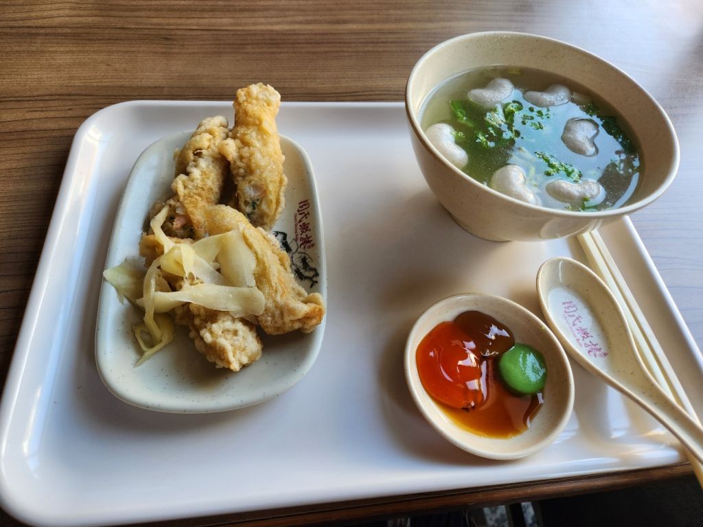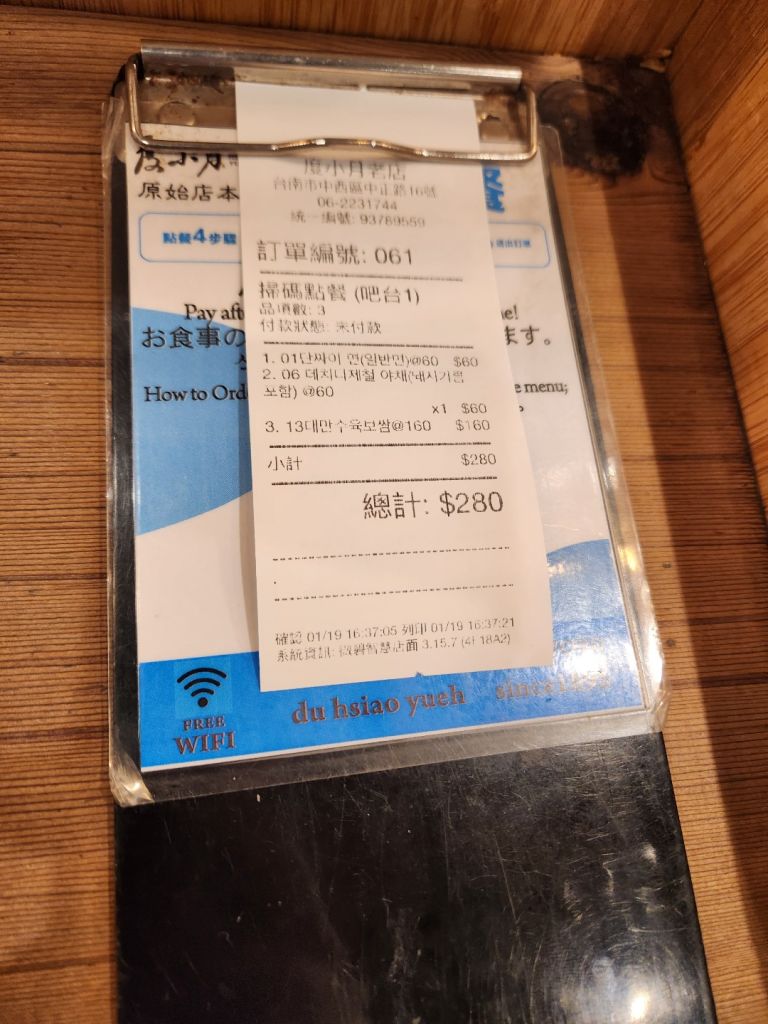 일어나자마자 (또 늦게 일어나서) 바로 안평으로 출발했다. 숙소 근처 버정에서 2번 타면 거의 종점이 안평이라 앉아서 편히 갔다. 꽤 멀어서 40~50분 정도 간듯. 타이난 버스는 시간이 딱딱 잘 맞아서 꼭 구글대로 움직여야 한다. 아점으로 새우튀김이 유명하다는 주씨하권으로 왔고 영어로 주문하니 한국어 메뉴판 주셨다ㅎㅎ 영어를 쓸 일이 없군. 양이 적어보이지만 적당했다. 생선죽순완자도 뽀독하니 맛있었다.