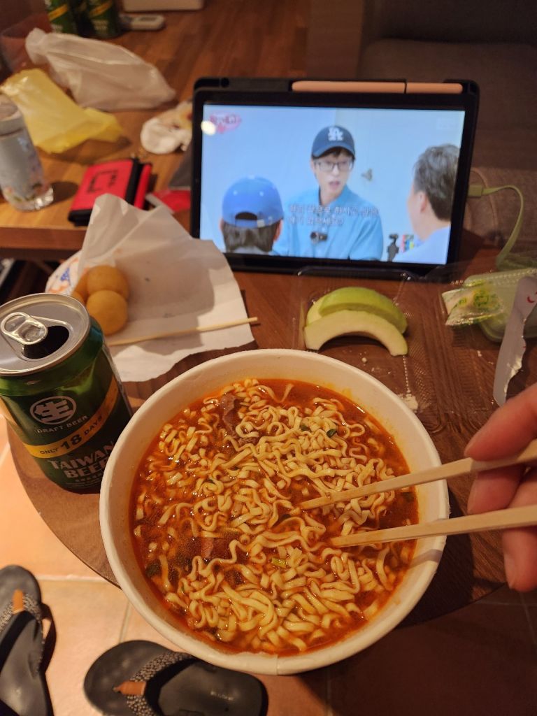 타이난에서 안평 가는 버스를 탔는데 중학생 한 무데기가 타서 어떤 한국 아저씨가 한국말로 오늘 뭐냐고 물으니 학생 하나가 한국말로 오늘 일찍 마쳤고 겨울방학이랬다. 벙~ ㅎㅎ 아직 방학을 안 한 학교가 있는지 컨딩의 야시장에는 수학여행 온 학생들로 넘쳐났다. 그들을 따라 뭐 사나 구경하다가 크리스피 치킨과 고구마볼, 과일로 구아바를 한 통 샀다. 그리고 배가 고팠는지 만한대찬 SUPER HOT FLAVOR를 샀다. 지난번에 뭔가 만한대찬이 만족스럽지 못하여 다시 도전! 맛이 없지는 않지만 면이 한국 컵라면과 달라 엄청 맛있지는 않았다.