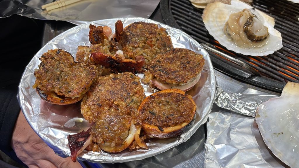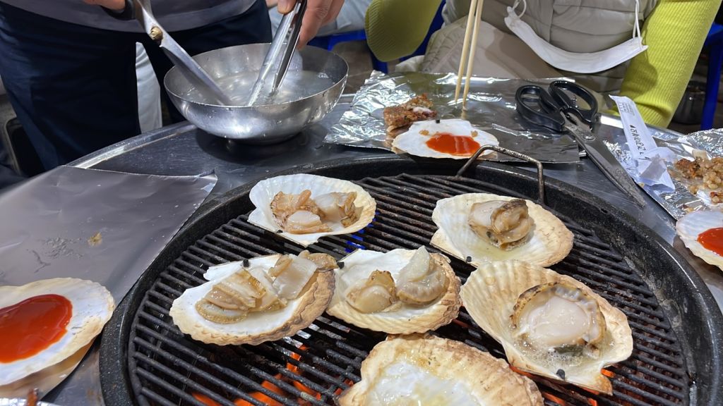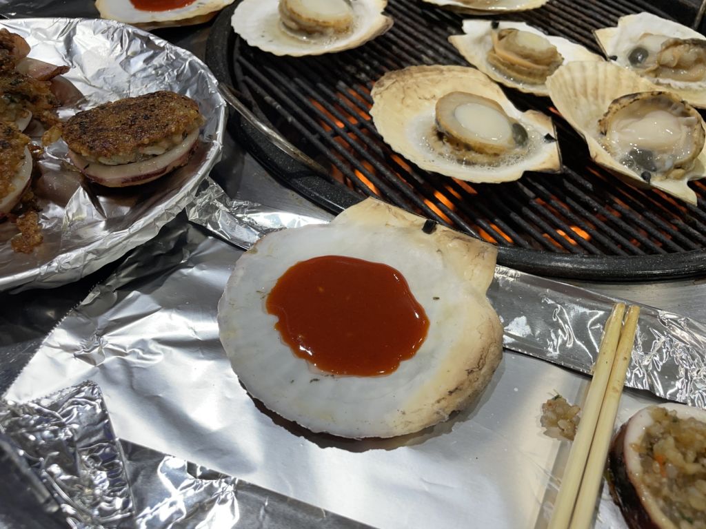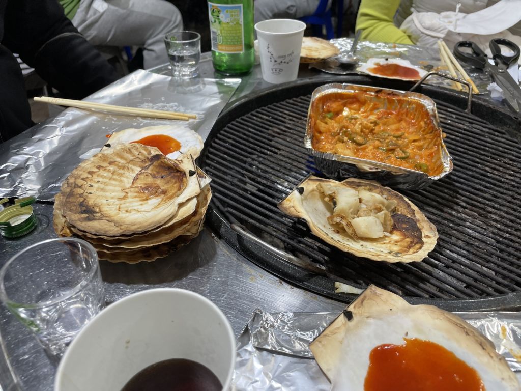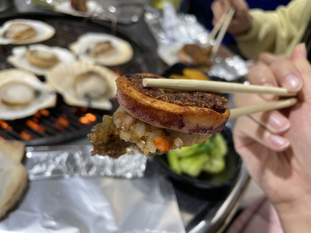 양양에서 가려고 했던 조개구이집이 없어졌더라구요ㅠㅠ 그래서 급하게 찾아보고 조개구이 구워준다는 소연이네에 가봤어요. 이게 대포항에 있는 가게라 되게 좁더라구요. 테이블이 5개 정도 있었는데 각자 대화소리가 다 들릴 정도로 옹기종기 붙어있고 서빙하시면서 부딪히고ㅠㅠ옷에 음식 묻고… 너무 정신이 없어서 별 하나 뺐어요.. 이거만 빼면 아주 완벽해요. 사장님 내외분과 아들분 셋이 운영하시는 것 같은데 아주머니께서 너무 친절하시더라구요!! 저희는 가리비구이 중짜리 주문했는데 가리비 11마리 나왔고, 키조개치즈규이랑 오징어순대, 해물라면도 먹었어요! 해물라면은 삼양라면이라 비추고 오징어 순대랑 키조개 존맛탱!!! 꼭 드세요❗️❗️❗️❗️